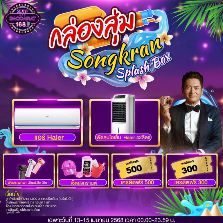ลุ้นแอร์, พัดลม, เซ็ตสงกรานต์ & เครดิตฟรีสูงสุด 𝟱𝟬𝟬฿